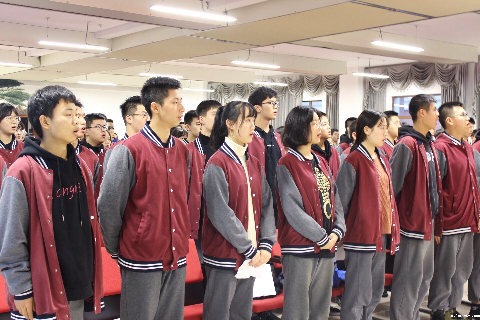 新任校团委副书记1703班杨峻诚同学发言。他表示将从做好党支部的助手、加强团组织自身建设、开展主题教育活动和志愿服务活动等方面发挥共青团的积极作用。