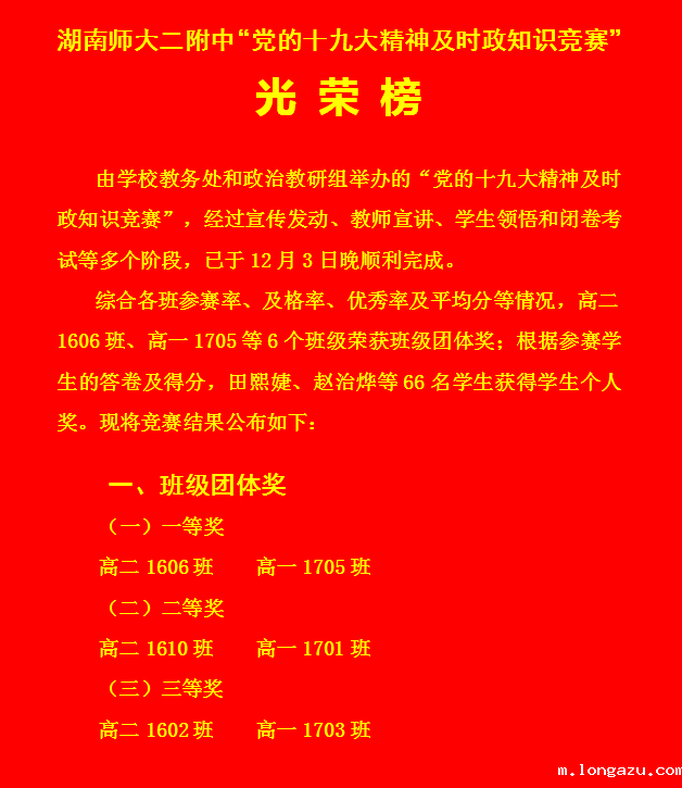 【光荣榜】湖南师大二附中2017—2018学年第一学期 高二物理竞赛